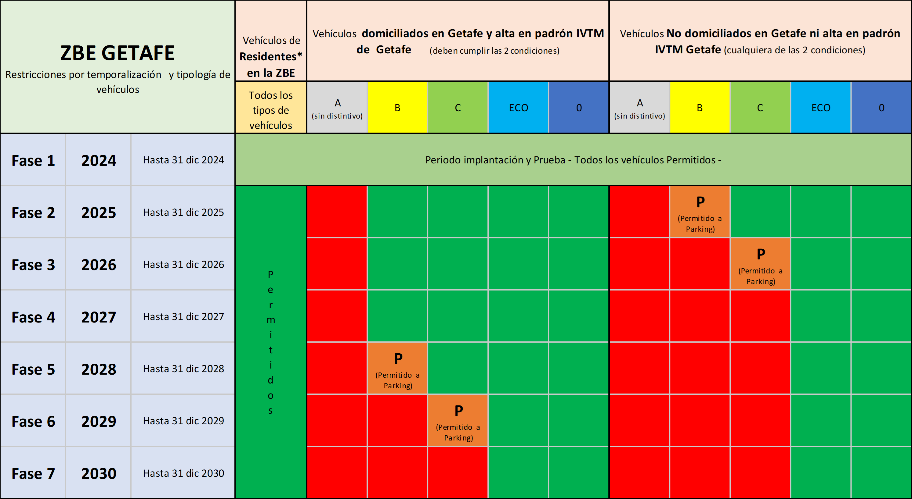 Como norma general (y salvo excepciones debidamente justificadas y autorizadas por el Ayuntamiento de Getafe) se establecen los siguientes criterios para el acceso con vehículos a la Zona de Bajas Emisiones: